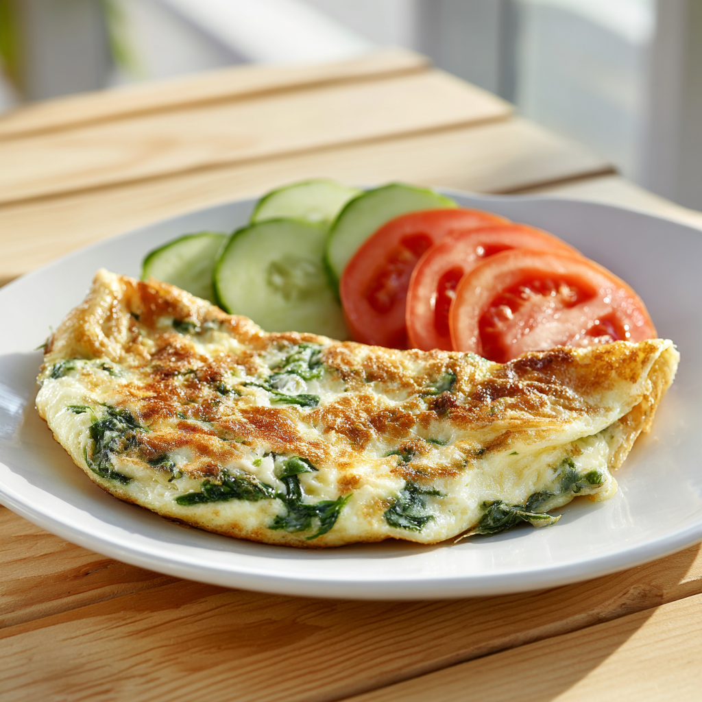 Пошаговый рецепт можно посмотреть по ссылке: омлет со шпинатом и овощи.