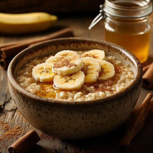1. Завтрак: овсяная каша с бананом и корицей (около 300 ккал)