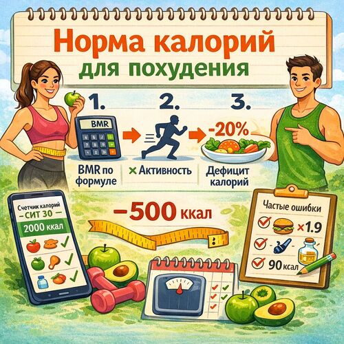 Правильная норма калорий для похудения начинается не с догадок и не с “1200 для всех”, а с расчета вашей суточной потребности и разумного дефицита. Самый практичный вариант для большинства людей в быту: